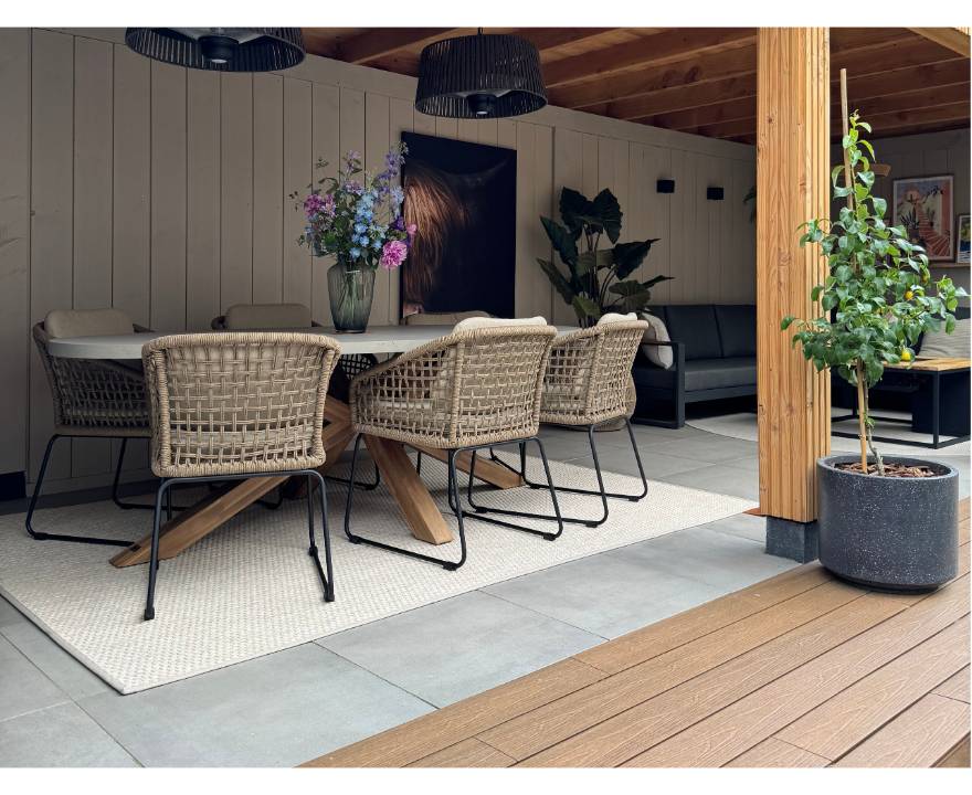 - Mix verschillende texturen en natuurlijke materialen voor een levendig geheel. Met een combinatie van stijl en comfort voelt je veranda meteen als een tweede woonkamer.