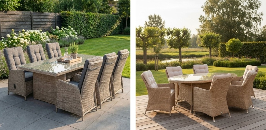 | Wicker | Lichtgewicht, onderhoudsvriendelijk, sfeervol | Minder strak dan aluminium |